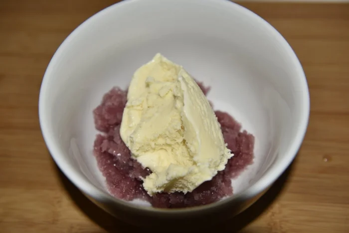 Inspired by the French tradition of eating cheese and grapes for dessert, this icy dessert gets its sweet, tangy taste from Concord grape juice, which is balanced by the smoothness of the cream cheese ice cream. You can serve each separately, but when served together they strike the perfect balance.